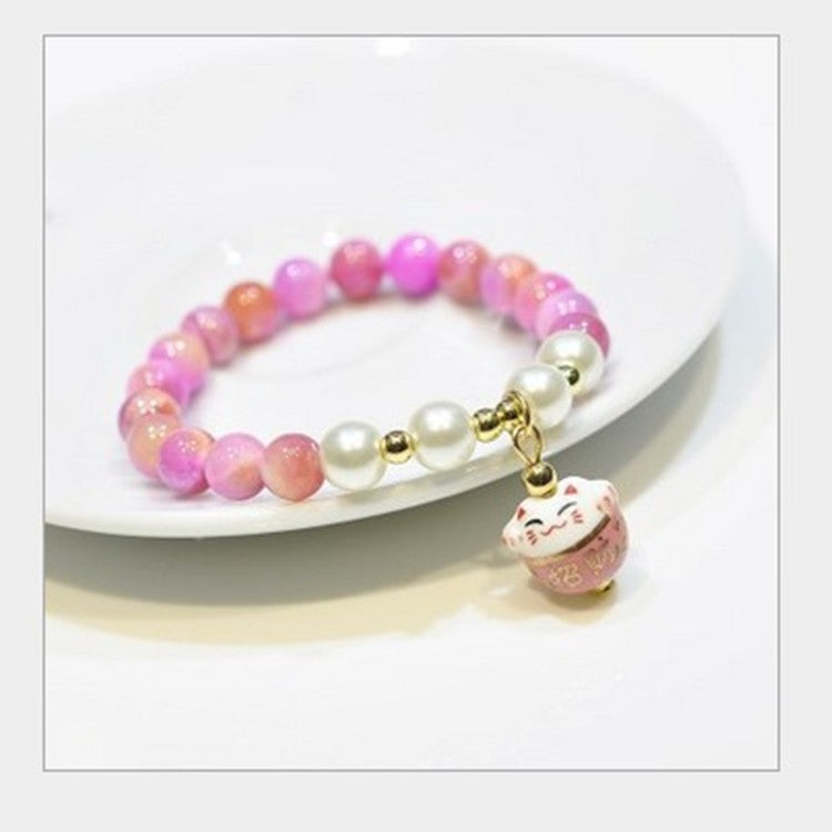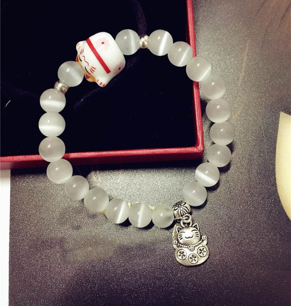 Adorable petit bracelet Maneki Neko en Perles de Pierre Naturelle, très Tendance!
