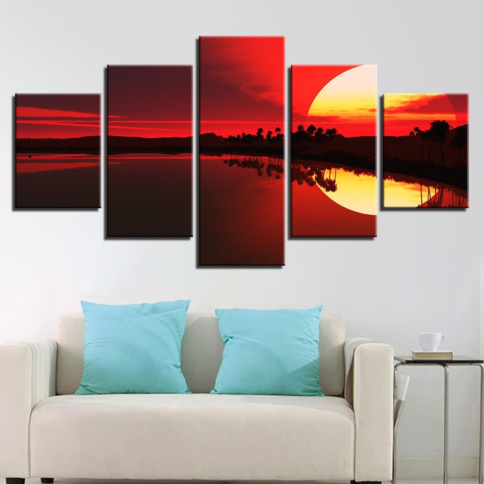 Tableau Soleil Couchant Feng shui dominante Rouge